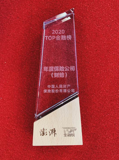 2020年11月18日,由“澎湃新闻”主办的“2020金融发展高峰论坛”发布“2020TOP金融榜评选”结果,公司获评“年度保险公司(财险)”,是唯一获得奖项的财险企业。