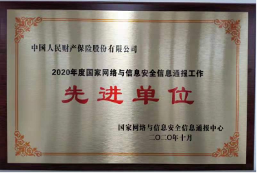 2020年10月,公司获评国家网络与信息安全信息通报中心颁发的“2020年度国家网络与信息安全信息通报工作先进单位”,是唯一一家获此荣誉的保险公司。长期以来,公司高度重视网络安全建设工作,多次参与上级部门、行业组织的网络安全相关制度、标准制定工作,并在“护网2019行动”中成为保险行业第一,荣获“护网先进单位”称号。