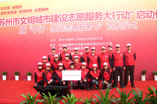 2010年11月15日,在苏州市分公司跨越20亿庆典暨志愿者保险捐赠仪式上,市分公司团委书记王晓勇从苏州市委宣传部副部长、苏州市文明办主任缪学为手中接过了飘扬的志愿者红旗。现场200位领导和员工共同见证苏州保险业第一支志愿者团队的诞生,而在仪式的人群中,一个红装攒动的方阵尤为兴奋和激动,在红色衣服和帽子上,在青春热血和爱心中,“苏州志愿者/中国人保”从今以后就是他们的自豪。