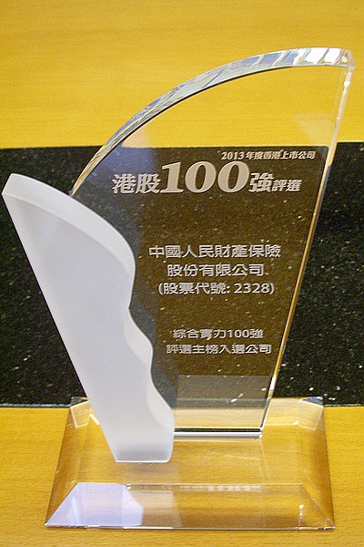 2013年11月18日,2013年度「港股100强」最终获奖者名单于香港正式揭晓,我公司再次成功入围本次「港股100强」评选活动的主榜榜单,并位列「港股100强」“综合实力100强”第39名,较2012年度排名提升11名。